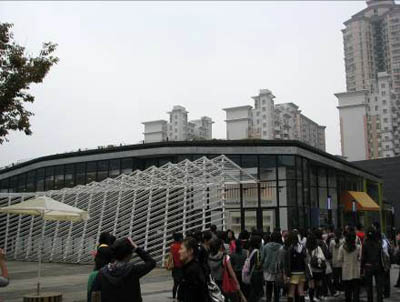 当然,最考验“功力”的是因地制宜营造艺术氛围。参观过程中,同学们尽情欣赏了雕塑中心A、B展区营造了的独特三度空间——长长的坡道直通5米高的“空中展厅”;原先的钢铁冷却池则改造成了别具一格的地下展厅,加上地面展厅交相融浑。就连原车间的排污沟,都未填埋,被改建成水草悠悠、鱼儿嬉闹的餐桌一景……据介绍,上海城雕艺术中心总展示面积将达2万平方米。所有展区均免费开放。最早建成的A、B象形字展示区,建筑面积为5000多平方米。不仅如此,与之交相辉映的是原上钢十厂酸洗车间所在地,与雕塑艺术中心合为一体的“红坊”艺术空间。