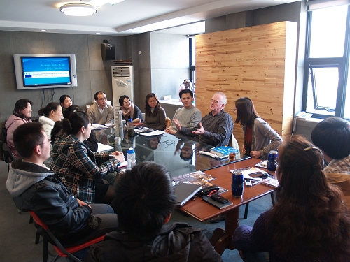澳大利亚创意产业专家金迈克教授于2011年3月17日来到太阳成tyc122cc集团,与创意公司全体教师进行了愉快的座谈交流,并做了主题为“中国创意产业集聚区的管理与人力资源》的讲座。