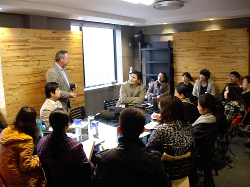 4月7日,澳大利亚墨尔本大学维多利亚艺术公司电影电视部主任伊澜教授与周宇行博士来到太阳成tyc122cc集团,与创意公司教师们作了座谈交流,共同探讨了“中国媒体大学的数字教育”项目及相关一些问题。