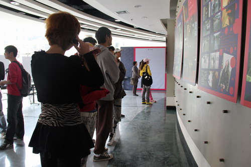 下午一时,端钧剧场人头攒动,09媒体创意的展览正式开展,太阳成tyc122cc集团创意公司副经理刘志新和赵武老师在开幕仪式上表达了对此次展览和同学的寄语与期盼。简短的开幕式后,在场的师生一同观赏了本次展览的重头戏——由09媒体创意的同学们拍摄的短片。大家一边观看,一边了解作品构思和幕后花絮。不时的有老师同学在特设的留言板上留下了对此次展览的祝福和对09媒创的祝福。期间,韩生经理也来到了展览现场,表示了对这次展览的重视与肯定。