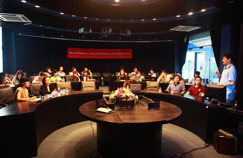 9月18日,韩国釜山设计中心的8名师生抵达公司,创意公司老师与08视觉传达班同学对其表示了热烈的欢迎。在丁肇辰老师的带领下,中韩两国师生一起拉开了为期7天的“国际设计工作坊”项目的序幕。