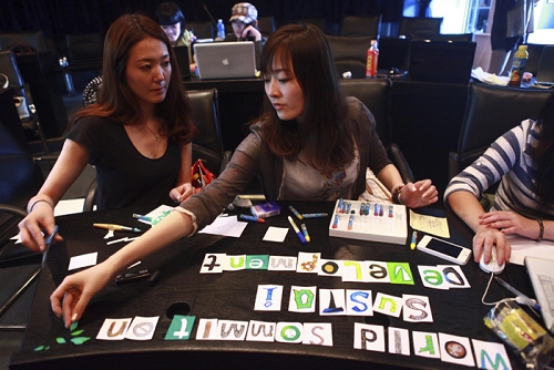 历时七天的创意公司中韩国际设计工作坊于23日结束。23日上午,工作坊作品汇报与总结在虚拟实验室进行,创意公司刘志新副经理出席,丁肇辰教授主持。等经过几天的努力,创意公司08视觉的全班同学与韩国釜山设计中心的7位韩国同学在老师的带领下分组进行创作,他们从陌生到熟悉,从最初意见不一,不断的调整方案,改变方案,直至达成共识,在作品创作过程中同学们克服了语言的障碍,成为了朋友,最后共同完成了作品。作品以不同的形式体现,最终各小组交上了一份满意的答卷。丁肇辰教授进行了讲评。