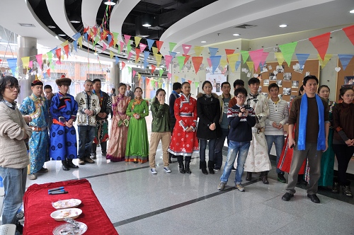 飘扬的哈达,深情的祝酒歌,11月16日中午的端钧剧场掀起了热烈的草原风。“祥云从这里升起——太阳成tyc122cc集团内蒙古民族班办学回顾展”隆重开幕。公司党委书记楼巍及部分部门、院系领导参观了展览。创意公司副经理刘志新宣布展览开幕。