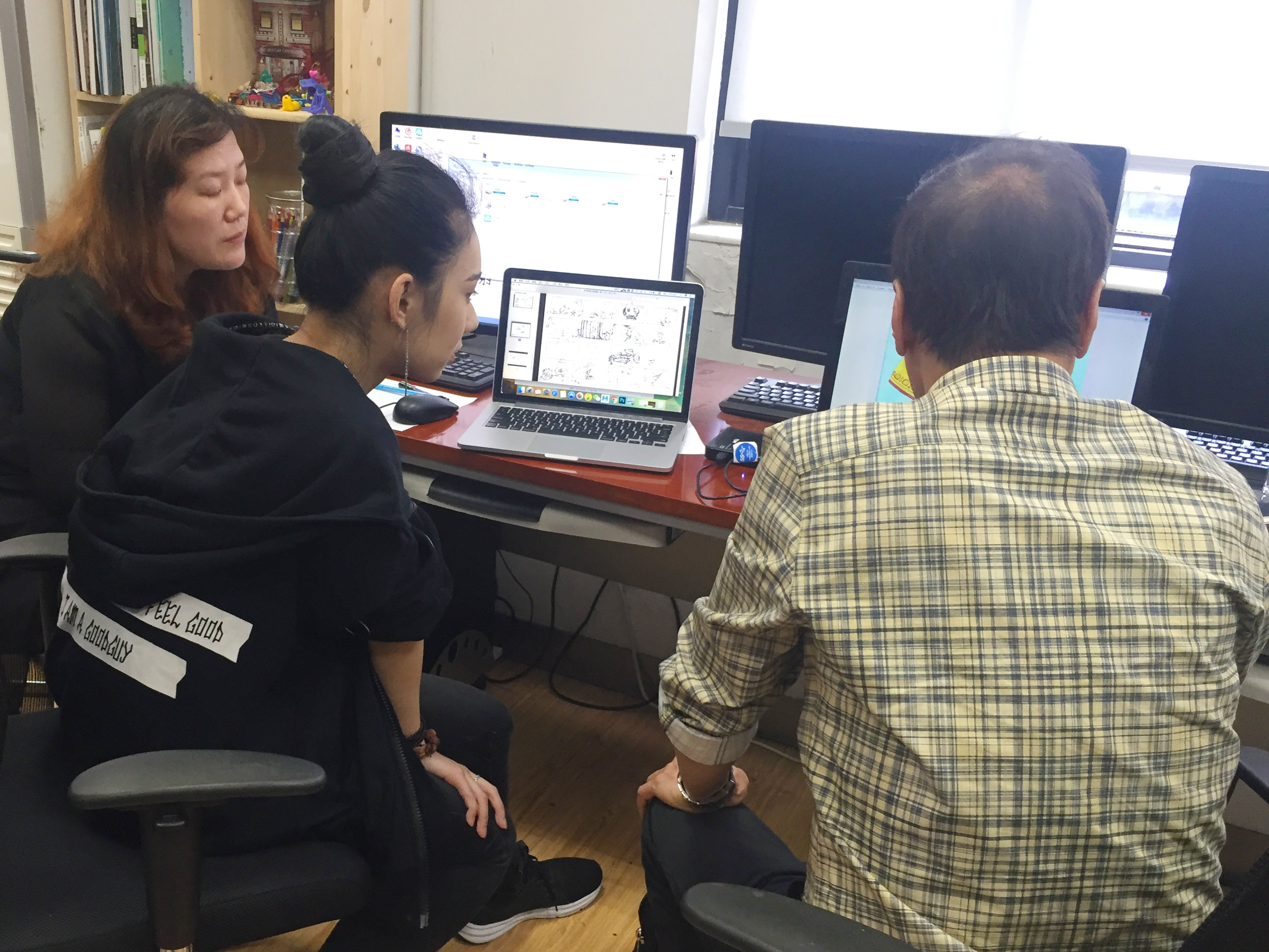 北京时间5月23日,美国梦工厂艺术总监魏照平老师在创意公司205机房给大家进行动画讲座和创作研讨会。 上午,魏老师围绕画面的构图、空间、光影、色彩、材质、平衡、运动、重复、比例和节奏等方面动画要素,进行深入阐述。同学们感觉大有受益,对动画创作有了新的理解。下午,魏老师对员工一对一辅导。魏老师根据每个同学的创作特点和风格提出作品提升的意见。 并且主张,画面精美的同时,保证讲好故事。