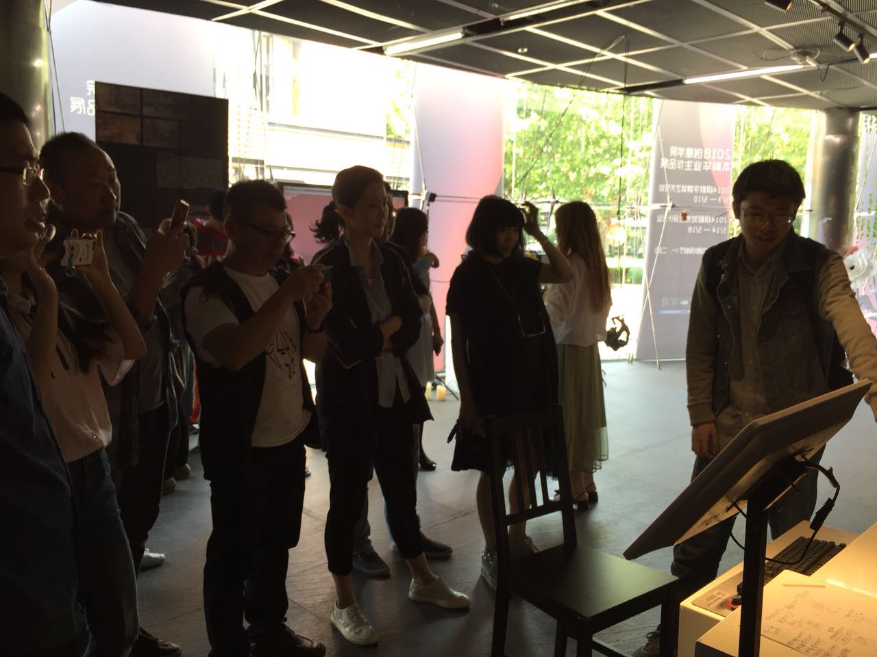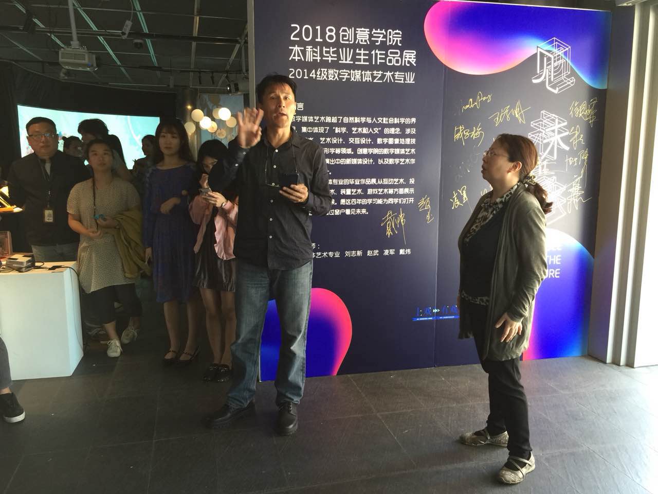 展览一拉开帷幕就吸引了众多校园内外的观众前来参观,创意公司全体教师当天也一同前往现场,让同学们依次介绍和展示各自的作品,现场可谓是热闹非凡,很多教师在优秀的作品前流连忘返。值得一提的是,这一次的展出作品融入了很多互动新媒体的元素,新颖的形式,这给观众们带来了不同的视觉体验。并且14级数字媒体艺术班各位同学对毕业展都格外的重视,同学们从去年9开始就准备毕业设计,之后不断完善修改,甚至到展览前一刻都还在为微小的细节做出努力,希望给大家呈现一个个完美的作品。其实,这次的展览也为校内外其他专业的老师同学提供了一个极好的了解数字媒体艺术专业的机会,在促进跨学术交流上起到了重要作用。同时观众们对于作品的反馈也会是各位同学再接再厉,再创新高度的鼓舞。
