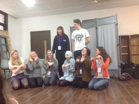 初与14名金发碧眼的英国人见面,大家都显得十分拘谨。简短的自我介绍之后,我们与英国同学两两成一组,按要求做起了热身运动。热身运动包括捏肩、拉伸、揉搓双臂等,很快我们就相互熟络起来。随后我们做了一个小游戏,类似中国的“马兰花”——同学们在教室里漫无目的地走,听到指令后迅速按要求人数抱成一团。我想这个游戏的意义就在于让同学们忘记自己本身的身份,无论国籍、性别,全身心地投入游戏角色中,这也是表演艺术所需要的。最后的短剧排演更是充满了欢声笑语。经过前面的准备环节,所有人都热情洋溢跃跃一试。情节简单的短剧被大家赋予了新的表现力。在欢声笑语中,大家的表演潜能都被激发出来了,得到了老师们的好评。