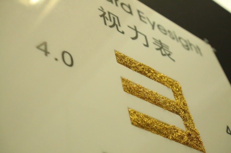 我在创作作品《视力表》时,也同样背负着这样的心理压力。作品强调的是物质世界中,人的欲望。生活中形形色色的材质代替不同类型的欲望,融入到视力表这个载体中。观众看到的不仅是视力表,更是“视利表”。一副视力表,121E的符号,我需要选取上百种不同颜色不同质地的材质,纯手工贴在亚克力底板上。这不仅要考验我的耐性更要考验我的实际操作能力。