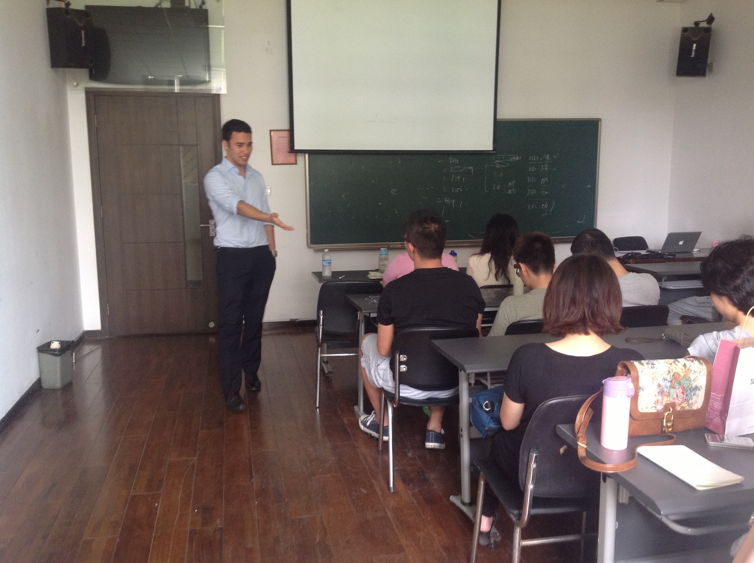 6月18日,周二下午的1:30,在红楼204教室,12级艺术管理班、11级剧场管理班以及其他班的同学一同参与了由澳洲史蒂文•福克斯带来的演讲。为了使我们大家都跟得上他的节奏,他适当放慢语速,并始终保持着笑容和大家沟通交流。