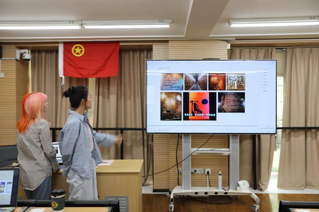 在本次“课程思政整合平台”活动暨主题团日之前,2016级视觉传达设计专业的员工在创意公司党支部书记方军老师指导下,结合陈晔老师正在开展的“课程思政”项目,在陈龙老师的协调下,分组参观考察了上海各大红色文化遗址后,将其特点与现代艺术融合,重组并设计纹样,发展其衍生品。