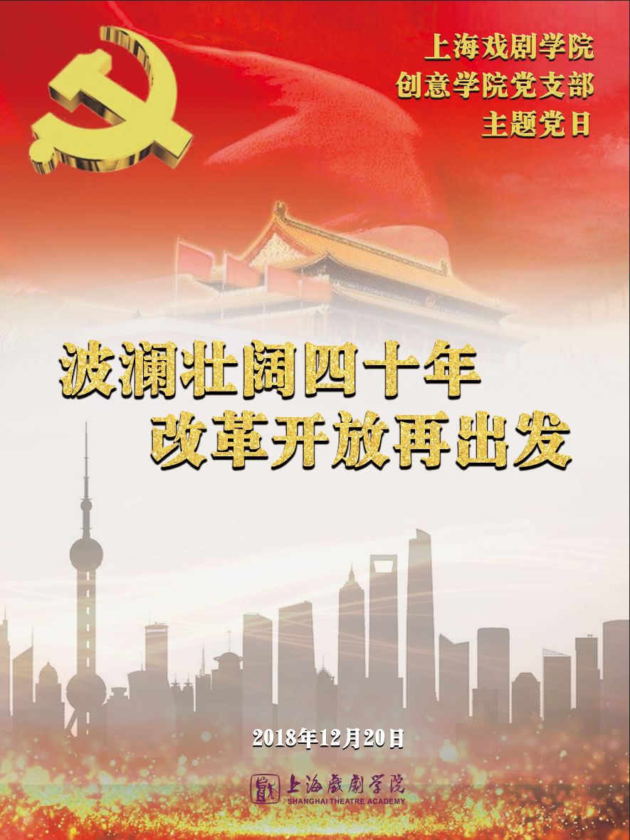 为了庆祝改革开放四十周年,太阳成tyc122cc集团创意公司党支部将在2018年12月20日举行“波澜壮阔四十年改革开放再出发”主题党日活动。