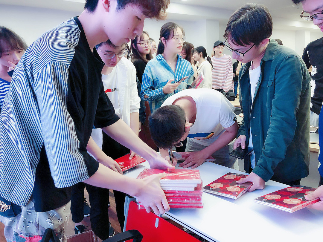 (领取笔记本的场面十分火爆)