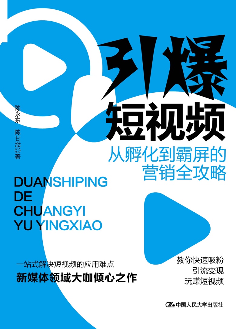 在新媒体领域有关策划、创意、传播与营销方面有着丰富经验的短视频达人陈永东、陈甘湉合著此书,致力于为读者呈现一本全面看待及探讨短视频应用的书籍。