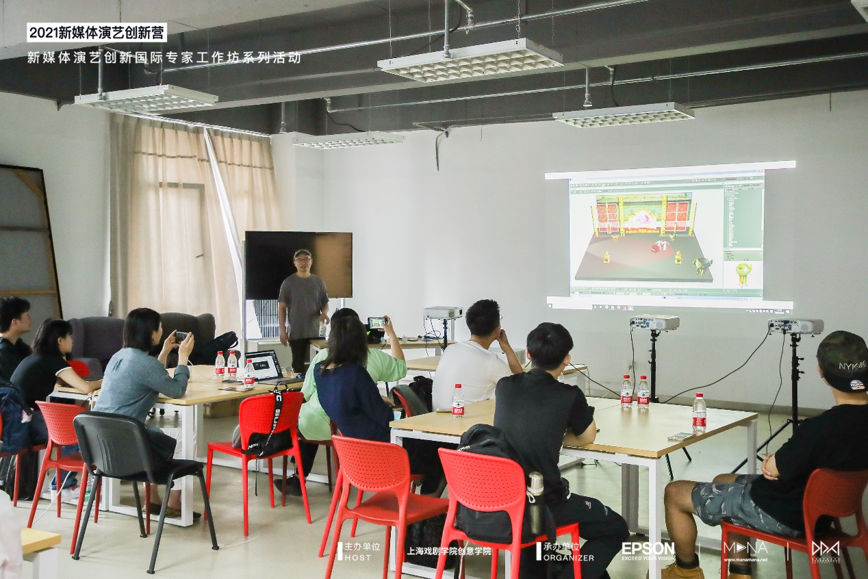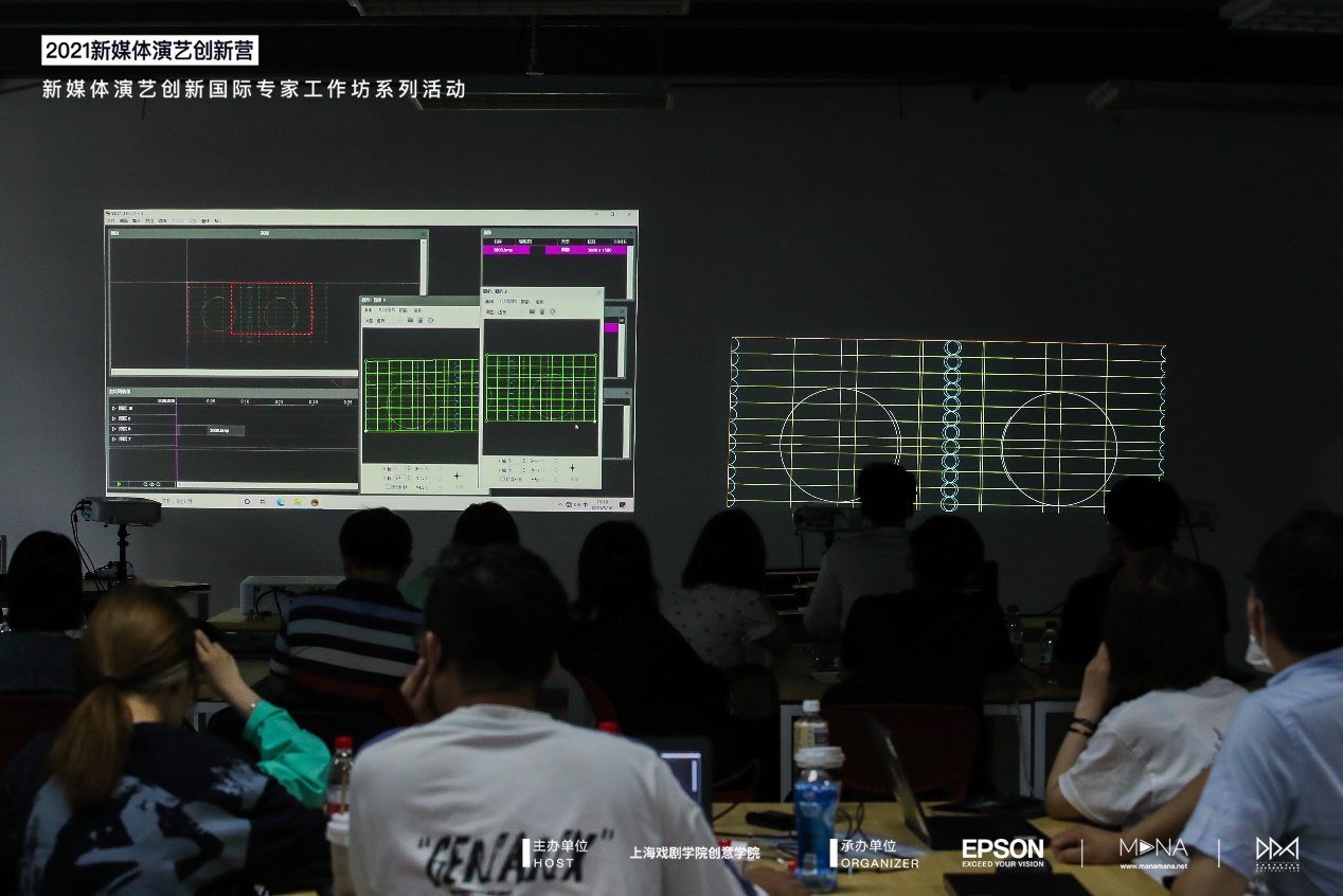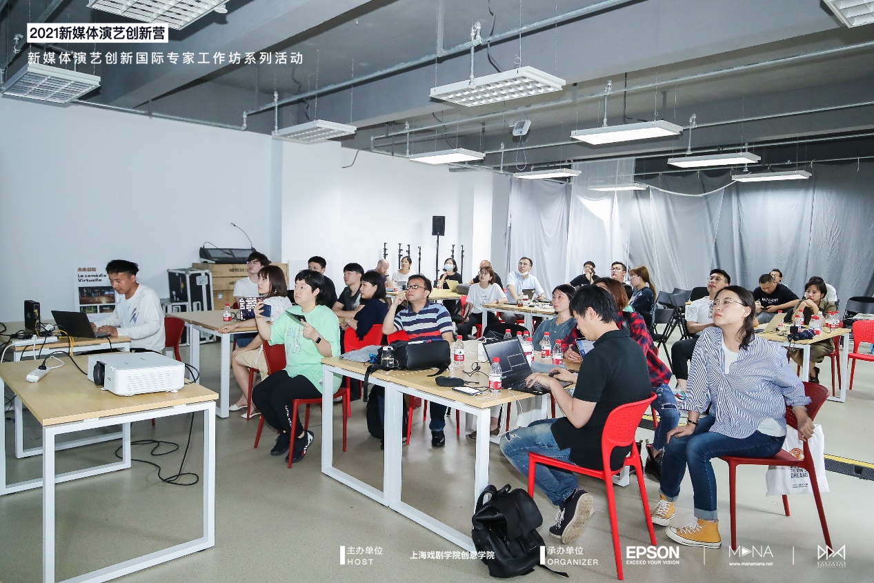 第二天是“影像与场景技术创新工作坊”,面向校园、社会限定招募工作坊学员,通过演艺软硬件、艺术创作软件等内容,让参与者可以在过程中了解、体验到新媒体演艺从创作到实操的完整流程。3位嘉宾分别从以下几个方面进行6个小时集中工作坊训练:新媒体演艺的技术变迁,目前主流的实现方式,软件和设备等;演艺相关案例赏析;从软件品牌角度去谈演艺行业的变化,未来的趋势,说明watchout 独特性/必要性等。从硬件品牌角度去谈演艺行业的变化,未来的趋势,说明投影设备的独特性。结合watchout 软件+ EPSON 设备,实现一个小的作品。