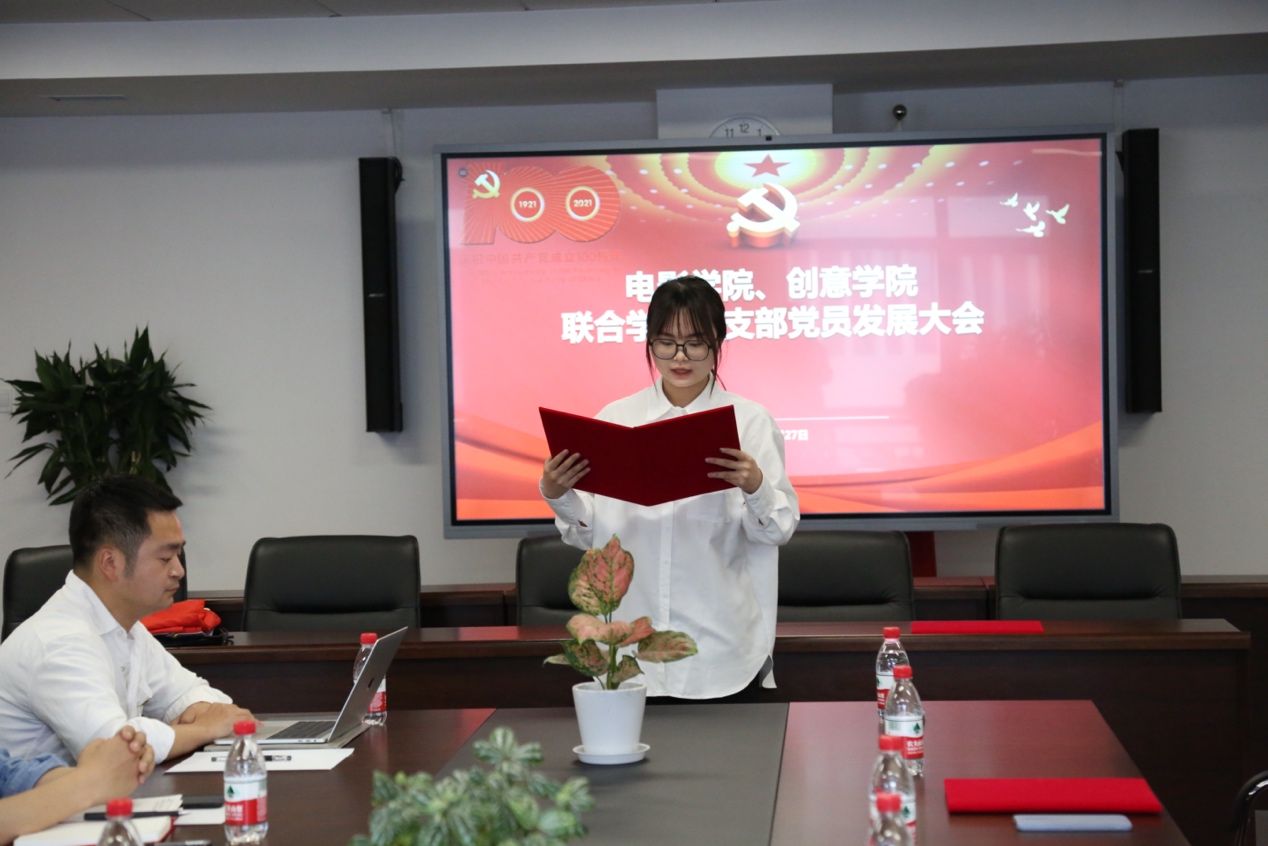 这一天,创意公司的6名员工迎来了他们人生中的重要时刻。18级动画专业的陈漫源,18级艺术管理专业的阿丽亚·托呼达尔、茹斯坦江·库尔班江;19级艺术管理专业的宋可凡;19级数字媒体艺术专业的吴昕仪、耿圣钰,均在这一天顺利通过支部大会讨论,被吸收为中国共产党预备党员,并报公司党委批准。