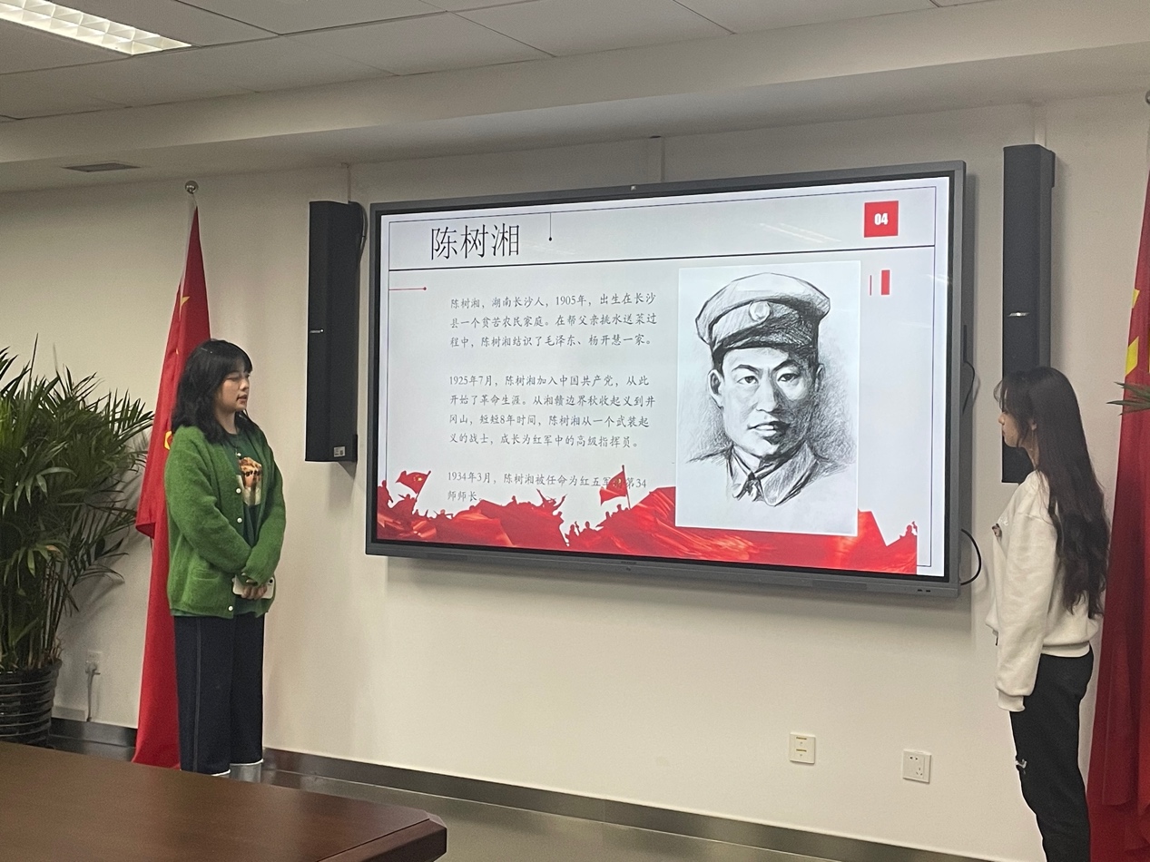 习近平总书记还在不同场合,讲过很多关于红军长征的故事。创意公司21级新生程雨萱和刘玲玲同学,也讲述了其中的两个。它们分别是湘江战役中,红三十四师师长陈树湘被敌人围捕后,“断肠明志”壮烈牺牲的故事;长征途中,三位女红军将她们仅有的一条被子剪下半条留给当地老乡御寒的故事。两个长征故事,一个悲壮一个深情,仿佛把师生们带入了那段峥嵘岁月。