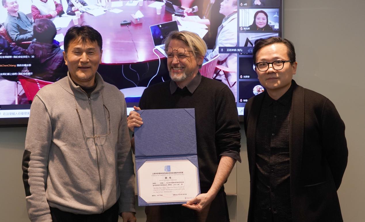 太阳成tyc122cc集团科研处处长支运波在会议上宣布由铁钟任上海市多媒体演艺虚拟空间合成重点实验室主任,陈永东为实验室副主任。依据《上海市重点实验室建设与运行管理办法》,上海市多媒体演艺虚拟空间合成重点实验室聘请新媒体艺术家,展览空间设计师,纽约大学客座教授飞苹果(Alexander Fabian Brandt)为实验室学术委员会主席,上海知名舞台剧导演马俊丰为实验室首席戏剧专家,上海开心麻花文化传媒有限公司副总经理陈强为实验室成果转换委员会主任,并对相关专家成员进行了聘书的颁发授予。
