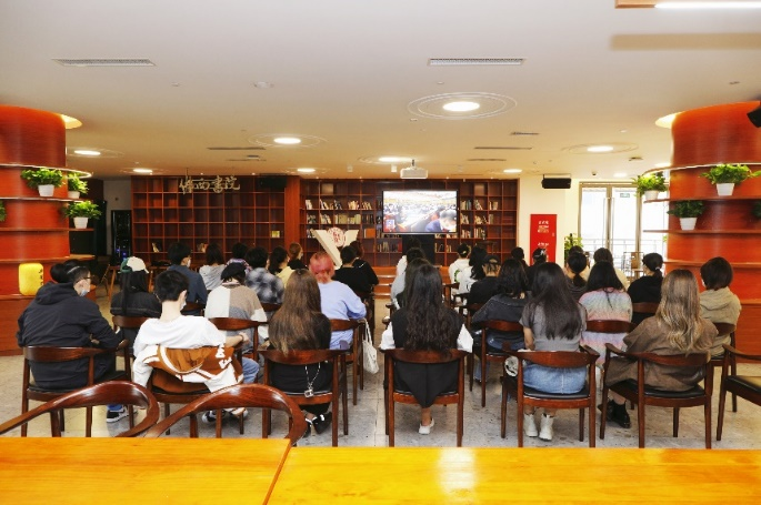 开幕会结束后,在昌林路校区观摩的党员们在唐芳老师带领下,来到党建思政文创角,重温二十大报告中的重要内容。