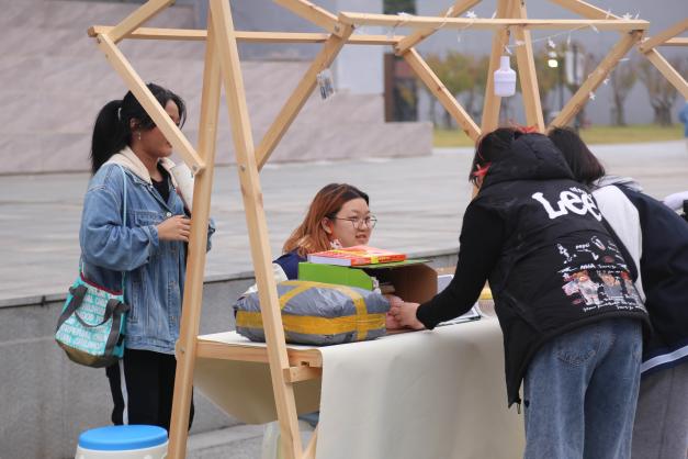步入市集区,同学们可以看到各式各样体现传统文化及当下流行文化的创意摊位,感受一场别开生面的文化体验。“‘针’嘟好看”、“包你满意”、“请吃胡萝卜吧”、“捕梦杂货铺”……这些摊位名凝聚着同学们的奇思妙想。精致可爱的手工制品与潮流时尚的创意周边,体现着传统工艺和现代创意文化的交流与融合,更展示了传统文化的独特魅力和创新思维的无限可能。