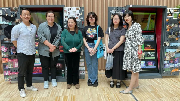 创意公司师生在展柜前合影