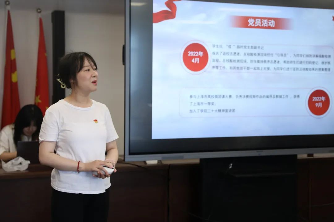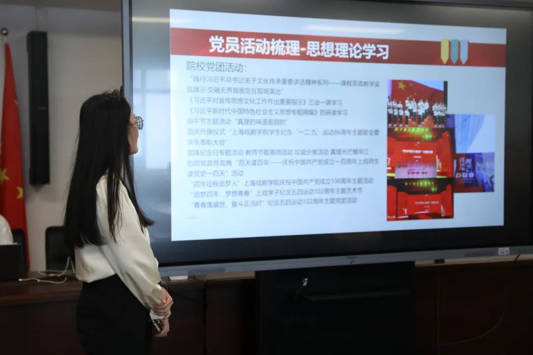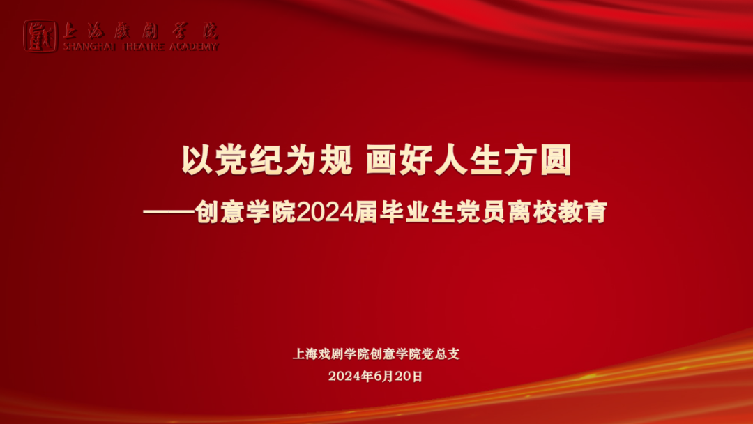 全体毕业生党员以汇报演讲形式总结了自己在上戏就读期间发挥先锋模范作用、积极参与志愿活动的相关经历,毕业生党员们不仅在学业上学有所获,在为公司师生志愿服务也体现了属于青年党员的青春担当。结合当前正在开展的党纪学习教育,毕业生党员表示走上工作岗位后,将始终以党章党纪作为自己的行为准则,接过时代重任,为强国复兴贡献青春力量。