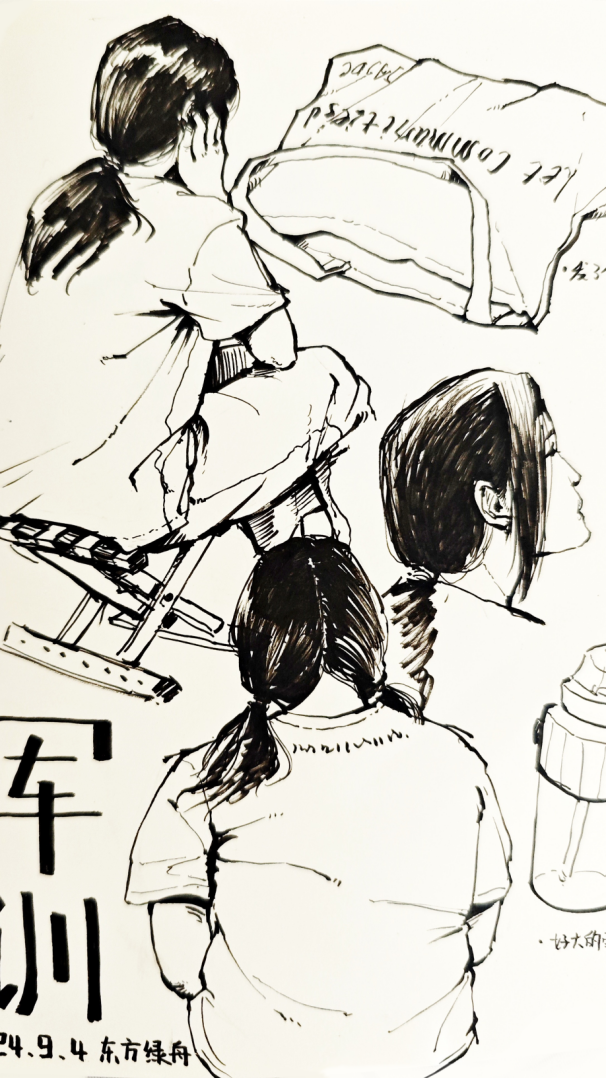 在军训生活中,创意公司的学子们丰富了体验,收获了成长。接下来,让我们一同欣赏他们的作品展示。这些作品,是他们内心世界的真实写照,是军训生活的点滴感悟,也是对未来艺术之路的憧憬与期待。
