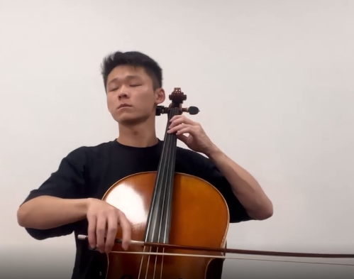 24级艺术管理本科的陈嘉阳同学以大提琴深情演奏《我和我的祖国》,表达对革命先烈的追思与缅怀,表达对祖国的崇高敬意。