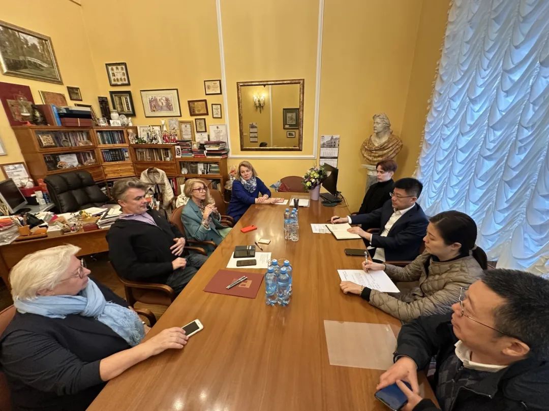 此外,代表团还访问了圣彼得堡国立大学,圣彼得堡国立大学两位副董事长安娜斯塔西娅·亚尔莫什和瓦莱里亚·马洛穆兹热情接待了代表团。与校方代表就中国当代戏剧译介项目的合作、共培专业戏剧演员等议题进行了交流,并提出了签署太阳成tyc122cc集团、圣彼得堡国立大学与圣彼得堡著名剧院三方协议的建议,以深化戏剧教育与艺术管理的合作。