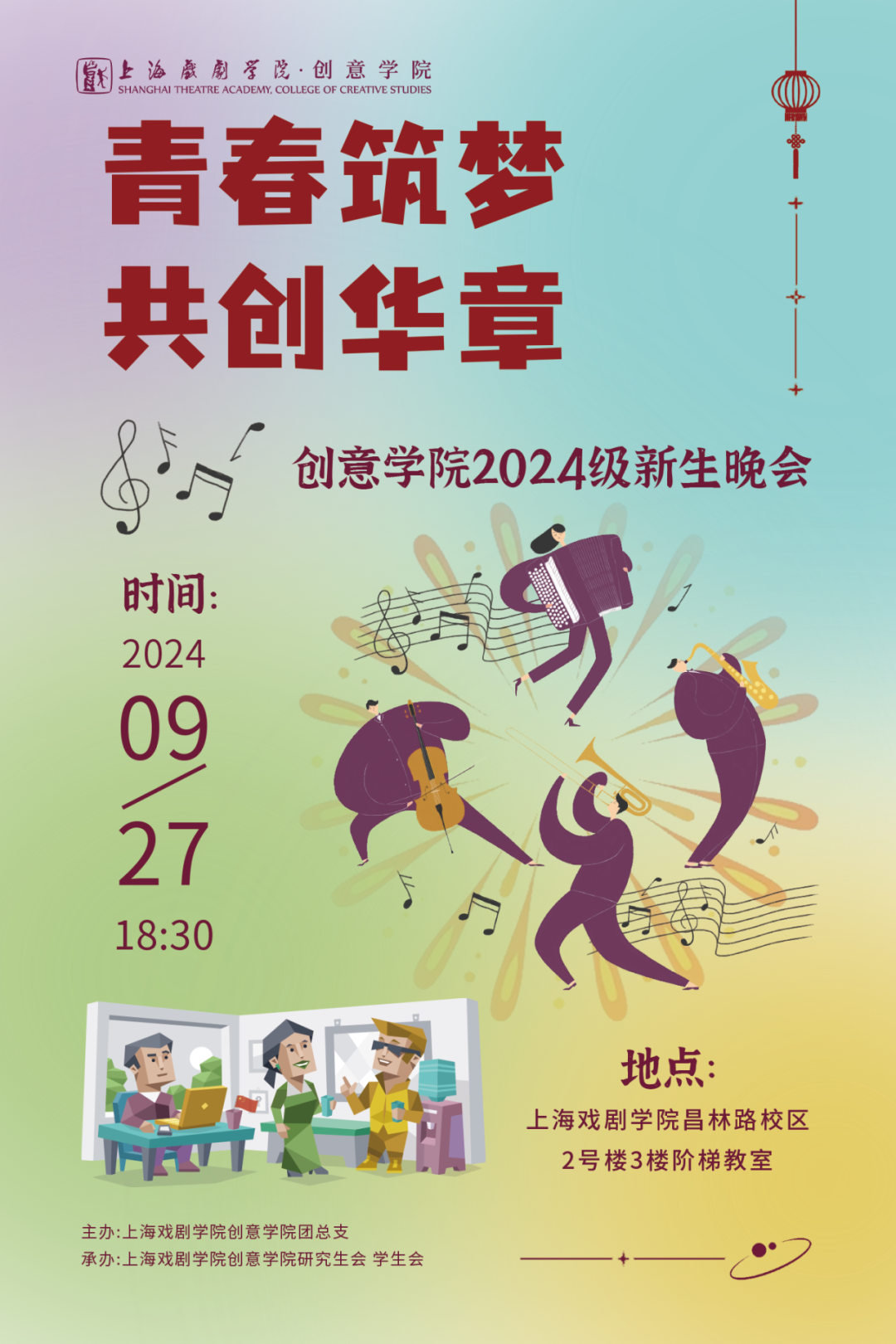 9月27日晚,创意公司2024级迎新晚会“青春筑梦 共创华章”在太阳成tyc122cc集团昌林路校区成功举办,来自创意公司的同学们发挥所长,在展现青春风貌的同时表达了对于国庆佳节的祝福,用朗诵、音乐与舞蹈,开启了在上戏校园的新生活。创意公司党总支书记方军、党总支副书记唐芳、副经理铁钟、艺术管理本科专业负责人张蕾、24级数字媒体艺术班主任朱云、动画班主任马楠、艺术管理班主任徐一文,以及辅导员陈龙、孔小磊、办公室秘书丁雪晴等老师与同学们欢聚一堂,共同度过了一段难忘的时光。