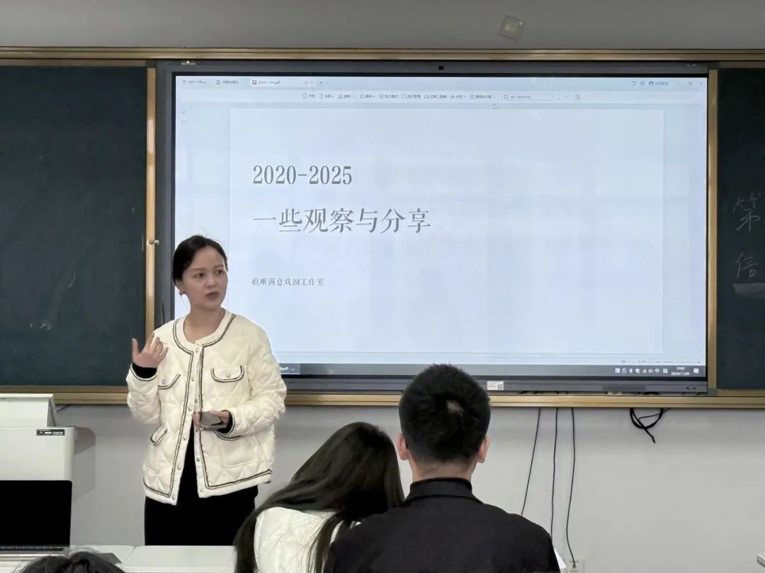 讲座结尾,主持人李艳老师进行了总结性发言。她指出,满顶老师为我们提供了一个很好的戏剧从业范本,在剧目选择、市场反馈、受众定位以及调整方面展示了细致的工作和深刻的见解,令我们受益匪浅。