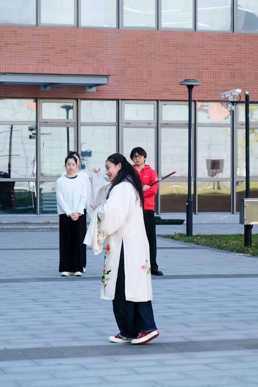 艺演戏乐经典经典红色戏曲片段、传统武术与民乐的交织、现代流行乐于吉他弹唱的结合……同学们以草坪为舞台展示才艺,唱响美好,尽情表达着对于艺术之美的追求。