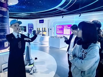 特妮娅机器人科技有限公司执行总裁王长全向师生详细介绍了联创中心的基本情况和发展历程,以及人工智能技术在医疗康复、公共服务、文化传承等领域的创新应用。据介绍,特妮娅人工智能机器人是联创中心的核心产品,该款机器人以“仿真人形+情感交互”为核心,采用生物兼容硅胶皮肤、360°仿生关节等工艺,实现高度拟人化的触感与表情,可完成拥抱、敬礼等15种动态交互。同时搭载自研云脑操作系统,支持多语切换、情绪识别及自主创作,赋予机器人“灵魂”。目前该款机器人已在商业迎宾、娱乐互动、家庭陪护、医疗辅助等多个领域投入使用。