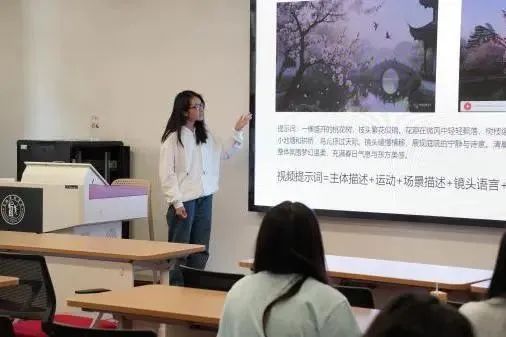 AI创作工作坊特邀AI校歌MV主创王文林、中国好创意暨全国数字艺术设计大赛国赛金奖得主徐子媛两位同学现场分享,演示从AI脚本生成到特效包装的全流程技法,实现红色叙事与智能技术的深度融合。