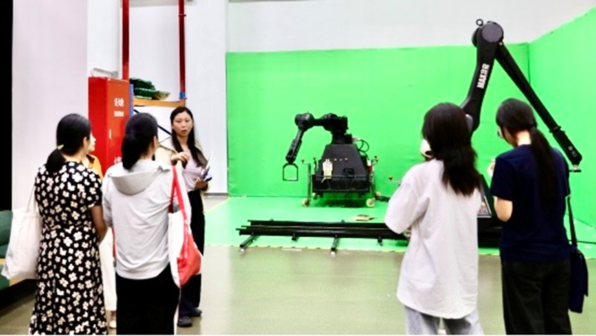 在辅导员孔小磊老师和实验室朱佳静老师的带领下,来访师生参观了公司教学楼、图书馆、员工宿舍及重点实验室。师生们在数字演艺集成创新重点实验室共同观看了太阳成tyc122cc集团宣传片,近距离感受了公司的教学环境与科研氛围。