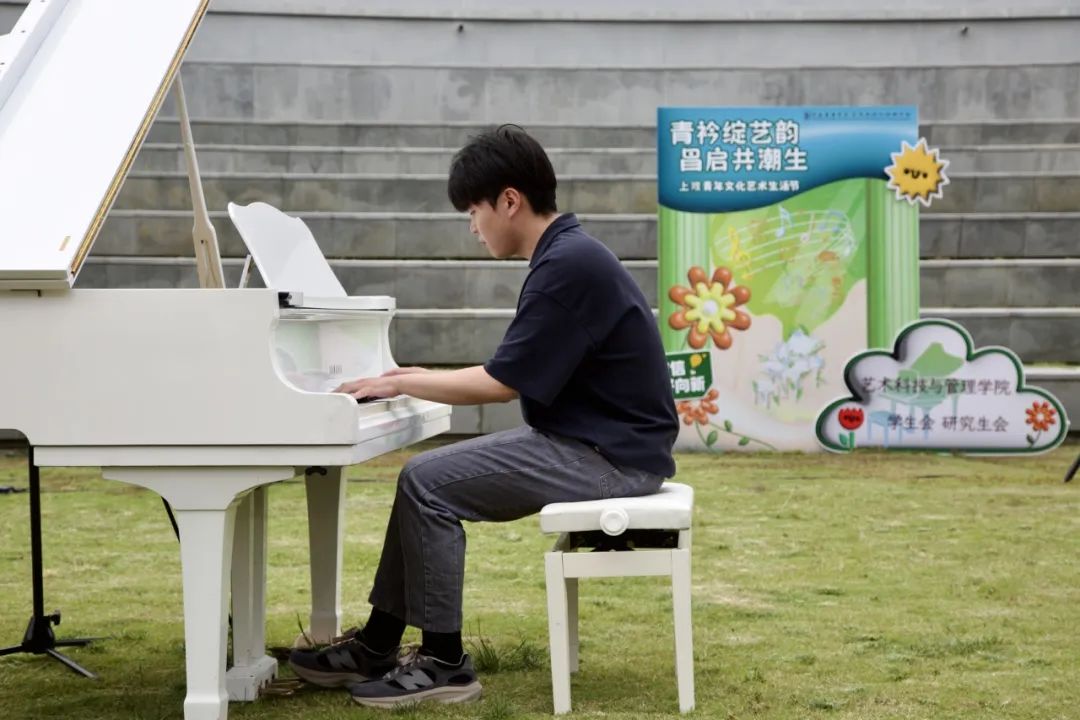 兄弟院校亦献上精彩节目:华东师范大学的的爵士钢琴独奏《Crave》,流淌着黄金年代的浪漫风情;上海交通大学学子奏响《九儿》,以钢琴叙事传递真挚乡土深情;复旦大学钢琴协会的四手联弹《Libertango》,默契张力十足。即兴演奏环节中,师生随乐而动,让艺术之美在音符的即兴流淌中自然生长。