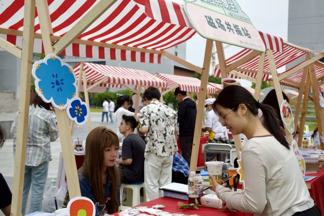 员工创业摊位“人生一串” “她叙Moss”等亮点频现,在传承传统技艺的基础上融入现代创意,展现青年学子的无限活力。