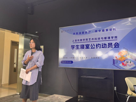 郭冠彦老师结合生活园区管理经验,提醒同学们留意寝室门后的安全信息牌,熟记逃生通道与值班电话,养成“人走断电、垃圾随清”的好习惯,为廉洁寝室建设筑牢安全基石。金曦老师则以“至善至美”的上戏精神为切入点,寄语员工骨干,希望大家将专业中的创造力带入寝室,实现廉洁文化与专业特色生动结合,让生活空间既温馨又充满正气,让廉洁之风与艺术氛围和谐交融。