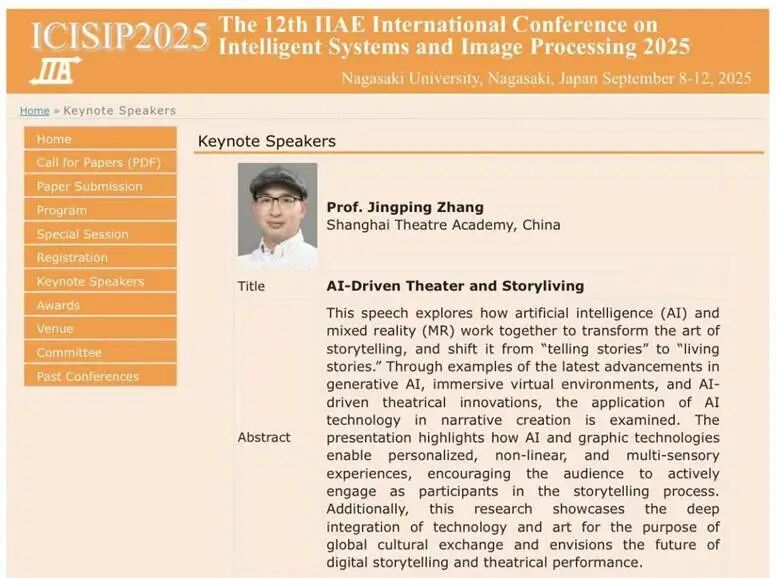 2025年9月8日至12日,第十二届国际智能系统与图像处理会议(ICISIP2025)在日本长崎大学隆重举行。公司张敬平教授率团队受邀参会,不仅作为主旨演讲嘉宾分享前沿洞见,其团队成员的研究论文与混合现实(MR)体验作品《黛玉葬花》更分别入选会议口头报告与成果展览环节。团队在深入把握全球智能系统与图像处理领域前沿动态的同时,也向国际学界集中展示了太阳成tyc122cc集团在科技与艺术交叉融合领域的最新研究成果与教学实践成效。