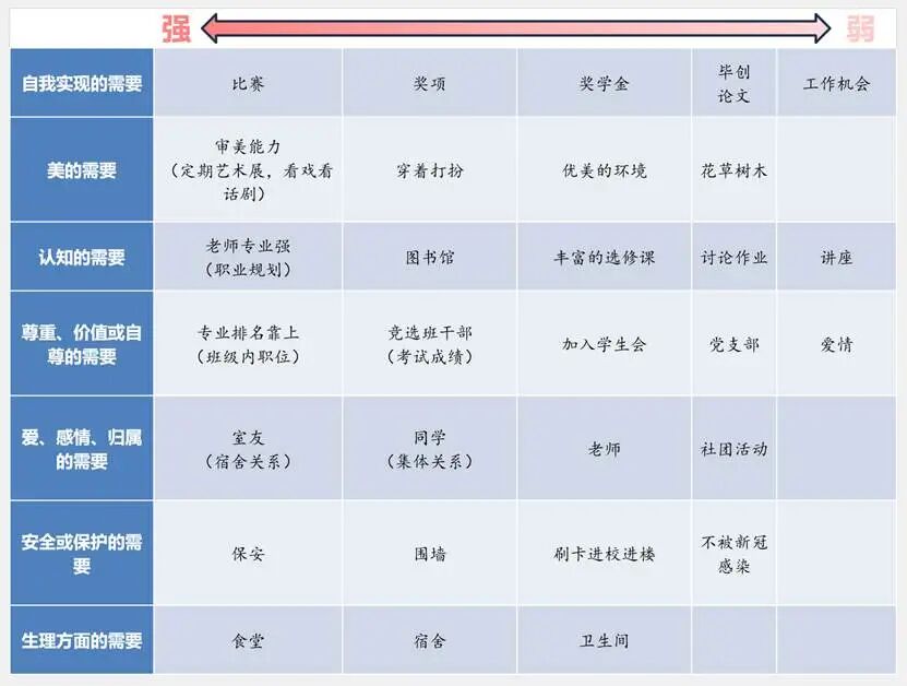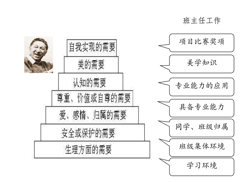 当我接手新的本科班时,面对刚入校的大一员工,我第一时间想到的,是如何帮助他们在适应老员工活的同时,唤醒自我认知、点燃发展动机。借助马斯洛需求层次理论,通过新学期的家长沟通、与员工面对面谈心、班会互动、班干部竞选等场景,为每一位员工绘制“需求分析金字塔”:一步步了解他们的归属、尊重乃至自我实现需求的层级状态。这一过程,不仅让我迅速掌握员工的心理地图,也帮助他们在新的集体中建立起价值感和归属感。