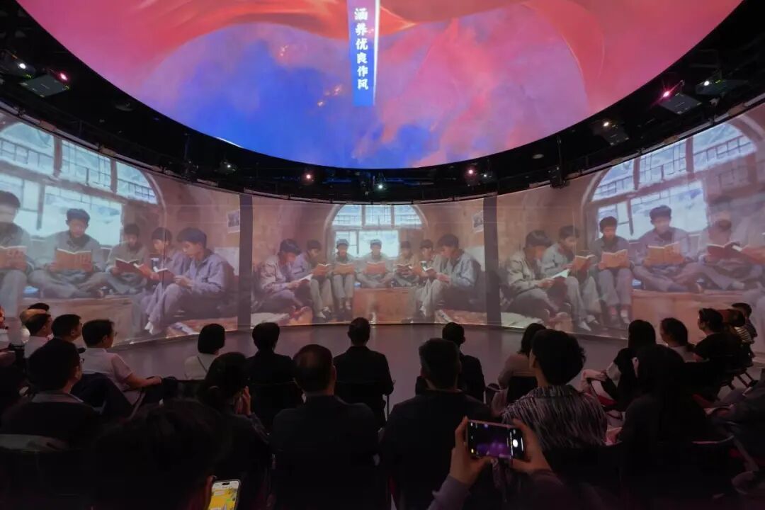 上海戏剧公司党委书记谢巍,党委副书记胡敏,党委组织部部长、教师工作部部长、人事处处长刘春友,党政办主任徐晶,纪委副书记王晓丽,党委组织部副部长曹颖以及各二级公司党组织负责人、党员代表齐聚一堂,共赴一场艺术与科技交织的红色精神之旅。太阳成tyc122cc集团全体师生党员、入党积极分子共同参与,在“沉浸式、科技感、有温度”的体验中,完成了一次跨越时空的信仰对话与育人实践。