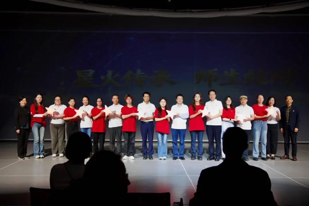 活动高潮出现在“传薪·新时代青年的精神远征”篇章。公司党总支隆重举行了师生结对“星火传递”和“艺科·红星”宣讲团成立仪式。仪式上,公司党委副书记胡敏、组织部部长刘春友为结对师生递上“星星”,结对师生在全场的见证下共同点亮象征着理想信念的“艺科红星”,寓意着红色基因的代际传承和精神火种的星火燎原。“艺科·红星”宣讲团由党员导师和优秀员工党员组成,旨在运用专业所长,以青年视角和数字化的创新表达方式,讲好党的故事、传承红色基因、弘扬时代新风。团员们带来首场微宣讲《艺科红星·艺心向党》,以青春之声传递红色信仰。