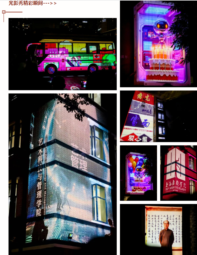 当夜幕落下,由公司师生承办的《逐光》沉浸式光影秀悄然开启。