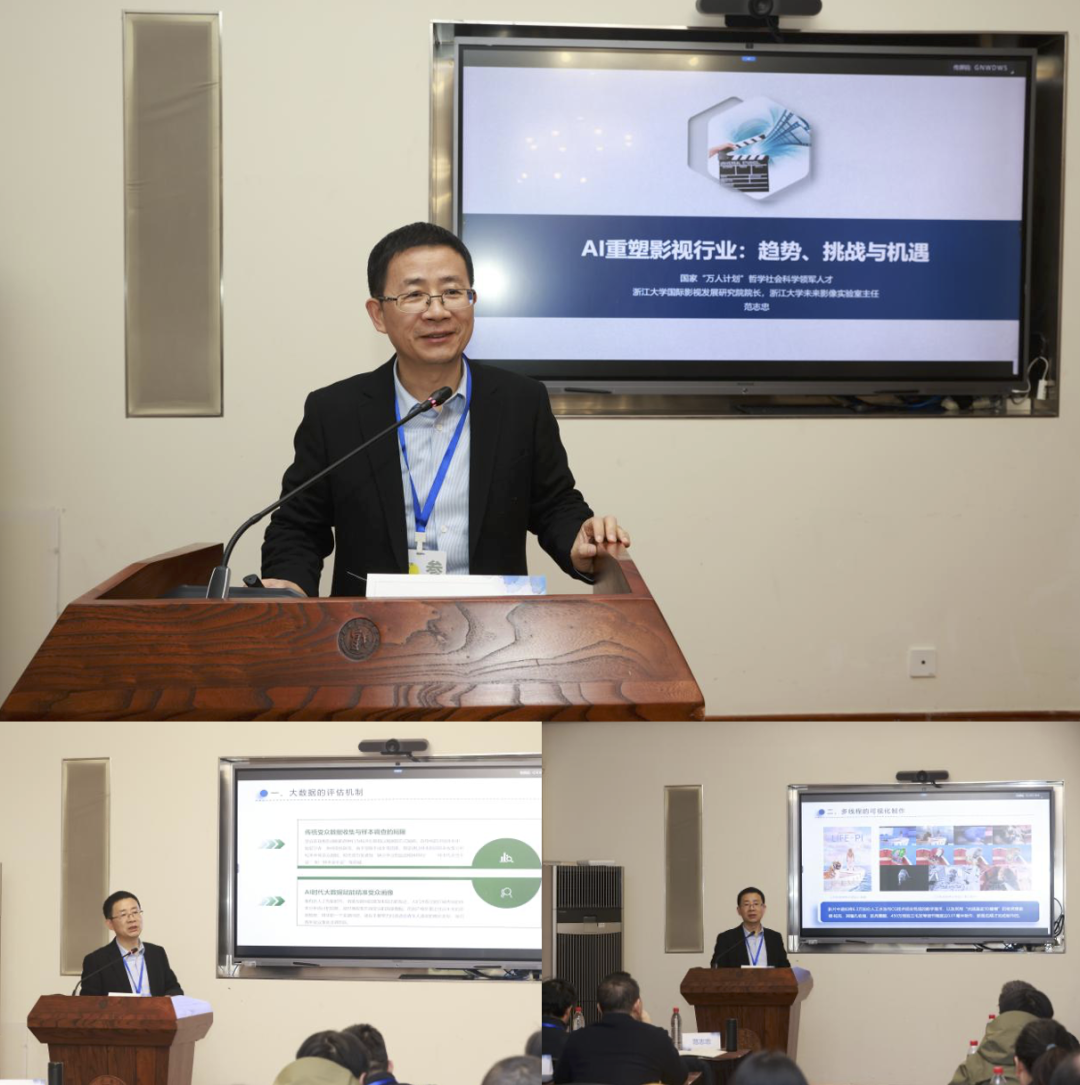 浙江大学范志忠教授以“AI重构影视行业”为题,指出人工智能正在重新定义影像创作中的人机关系。他深入分析了大数据如何重塑影视立项逻辑、AI推动的“多线程”制作模式升级,并探讨了AI时代人类创作主体性面临的挑战与稀缺价值带来的新机遇。