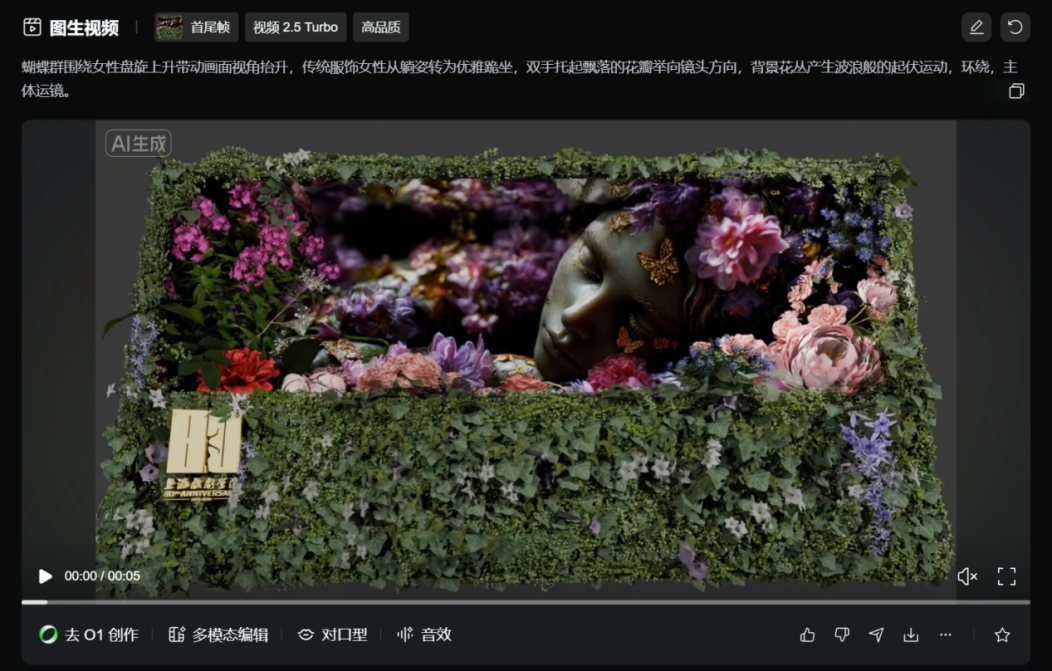 为了让“繁花”真正生长,我们使用AIGC辅助生成中间帧和粒子等效果,极大提升了制作效率。但团队并未止步于此,对每一段生成动画进行情感校准——反复调整花瓣飘落的速度、旋转的角度,甚至模拟水下光影的折射,直到画面呼吸着应有的诗意。